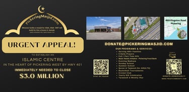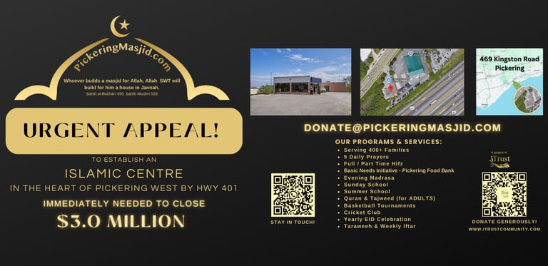 Pickering Masjid is conveniently located in Pickering West, providing a welcoming space for worship, learning, and community connection.