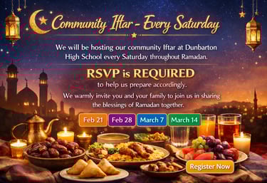 Our goal is to make this transition as smooth and convenient as possible, and volunteers will be present each night to guide and assist attendees. We look forward to welcoming you and sharing the blessings of Ramadan together.