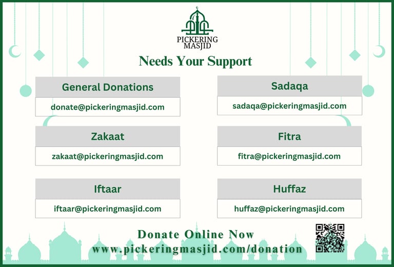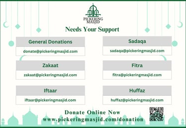 Pickering Masjid is conveniently located in Pickering West, providing a welcoming space for worship, learning, and community connection.